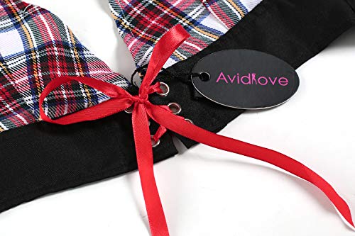 Specification: Avidlove Sexy minirok Ouvert met beha’s set babydoll nachtkleding neckholder diepe V-hals cosplay schoolmeisje kostuum…