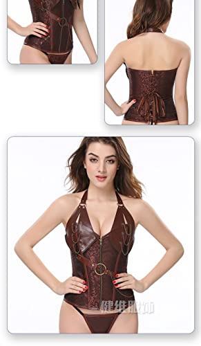 Specification: Damesstaal Boned Vintage Corset Steampunk Rits Gothic Bustier Taille Cincher Corset (Kleur : Coffee, Size : XXX-Large)