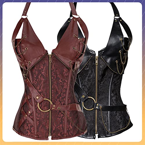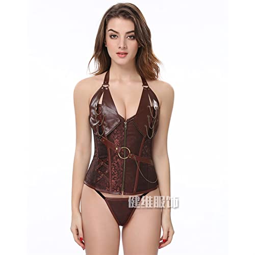 Damesstaal Boned Vintage Corset Steampunk Rits Gothic Bustier Taille Cincher Corset (Kleur : Coffee, Size : XXX-Large)