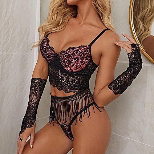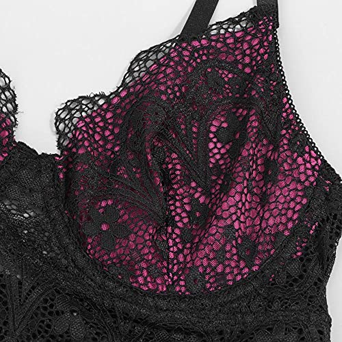 Sexy ontwerp: ondergoed babydoll lingerie met halter diepe v-hals, adembenemende rugloze, zachte cups met kant, prachtig golfpatroon om je rondingen te laten zien, maakt je eleganter, charmant, modieus en chic. Perfect voor nachtkleding, nachtkleding, voor Valentijnsdag, Kerstmis, jubileum, slaapkamer, badkamer, huwelijksreis, huwelijksnacht, lingerie of een warme nacht. Materiaal: 90% polyamide, 10% spandex. Sexy nachtkleding voor dames,ondergoed, nachtjurk met G-string, transparante kant op borst en taille aan beide zijden, met kanten sjaalvoering en verstelbare, kruis en dwars lopende schouderbanden op de rug, met V-hals en rugvrij, zijsplit. De taille is gemaakt van kant, uitgehold, met bloemenkant. Gemaakt van hoogwaardig en comfortabel materiaal, zacht, comfortabel en ademend voor vrouwen. De romantische en sexy kant is perfect om te slapen, het kant is zacht en comfortabel.