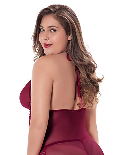 Specification: LINGERLOVE Dames Sexy Lingerieset Kanten Ondergoed Bodysuit Nachthemd met Jarretelhouders en G-string