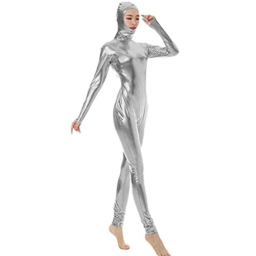 Plus Szie Vrouwen Spandex Zentai Kunstleer Full Bodysuit Glanzend Metallic Panty Zentai Pak Dansen Hooded Halloween…